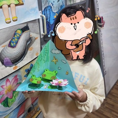 안녕하세요!!!오늘은 바로~곧 다가오는 새봄을 맞이하여,긴 겨울잠에서 깨어난 개구리들이 사는연못가를 만들어 줄 거예요!!우리 아이들이 어떤 풍경을 가꾸어주고 있는지함께 보러가시죠~ 다들 정말 열심히지요~주인공인 귀여운 개구리 친구들을먼저 그리고 오려주었어요!그 후, 긴 종이 두개를 엮어스프링처럼 통통 튀어오르도록 접어주었답니다!주변에 함께 살고 있는 금붕어와하늘도 역시 표현해주었어요!이제 완성된 모습을 보러 갈까요? 길게 늘어진 버드나무도 추가하니따뜻한 봄날의 기운이 물씬 풍기네요~!!새로운 계절이 와도 지치지 말고모두 함께 열심히 그림 그려보아요~~~예술램프는 늘 아이들의 반응을 살피고실력도 같이 업!! 할 수 있는 수업을 추구한..